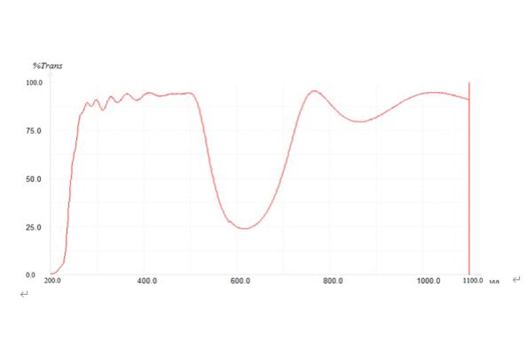 Pláta Grianchloch optúla infridhearg: Tá JGS3 trédhearcach sa speictream infheicthe agus infridhearg; níl aon bhanda ionsúcháin soiléir sa bhanda 2600-2800nm.