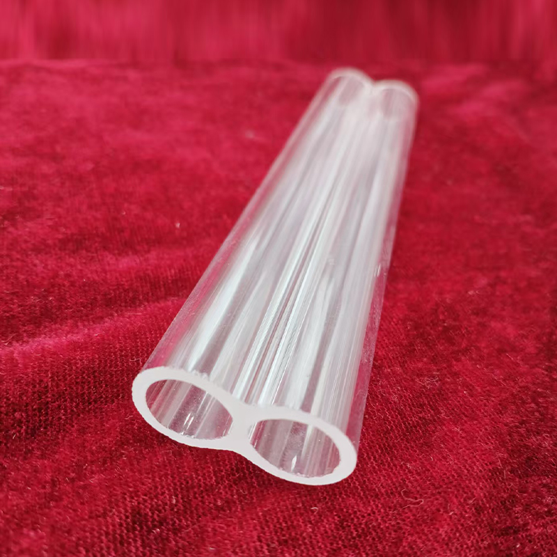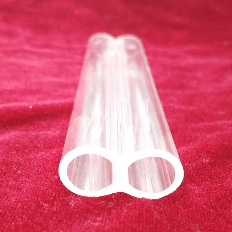 Úsáideann an feadán dúbailte feadán Grianchloch trédhearcach dé-ocsaíd sileacain ard-íonachta mar an croí-amhábhar, le hábhar SiO₂ níos mó ná 99.9% agus ábhar eisíontais thar a bheith íseal, rud a chinntíonn cobhsaíocht fhadtéarmach an ábhair ón bhfoinse. Tá cruinneas ard geoiméadrach tríthoiseach agus tiús bhalla feadán aonfhoirmeach aige, a fhéadfaidh freastal ar riachtanais dhian meaisínithe cruinneas agus coinníollacha oibre casta, agus bonn iontaofa a sholáthar d'oibriú éifeachtach an trealaimh.