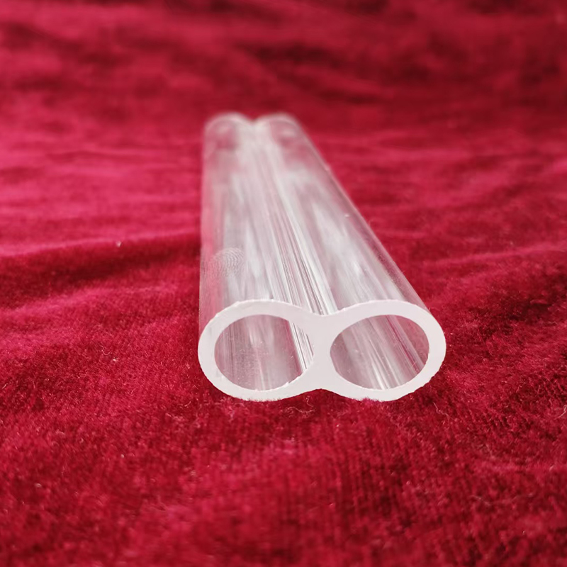 Úsáideann an feadán dúbailte feadán Grianchloch trédhearcach dé-ocsaíd sileacain ard-íonachta mar an croí-amhábhar, le hábhar SiO₂ níos mó ná 99.9% agus ábhar eisíontais thar a bheith íseal, rud a chinntíonn cobhsaíocht fhadtéarmach an ábhair ón bhfoinse. Tá cruinneas ard geoiméadrach tríthoiseach agus tiús bhalla feadán aonfhoirmeach aige, a fhéadfaidh freastal ar riachtanais dhian meaisínithe cruinneas agus coinníollacha oibre casta, agus bonn iontaofa a sholáthar d'oibriú éifeachtach an trealaimh.