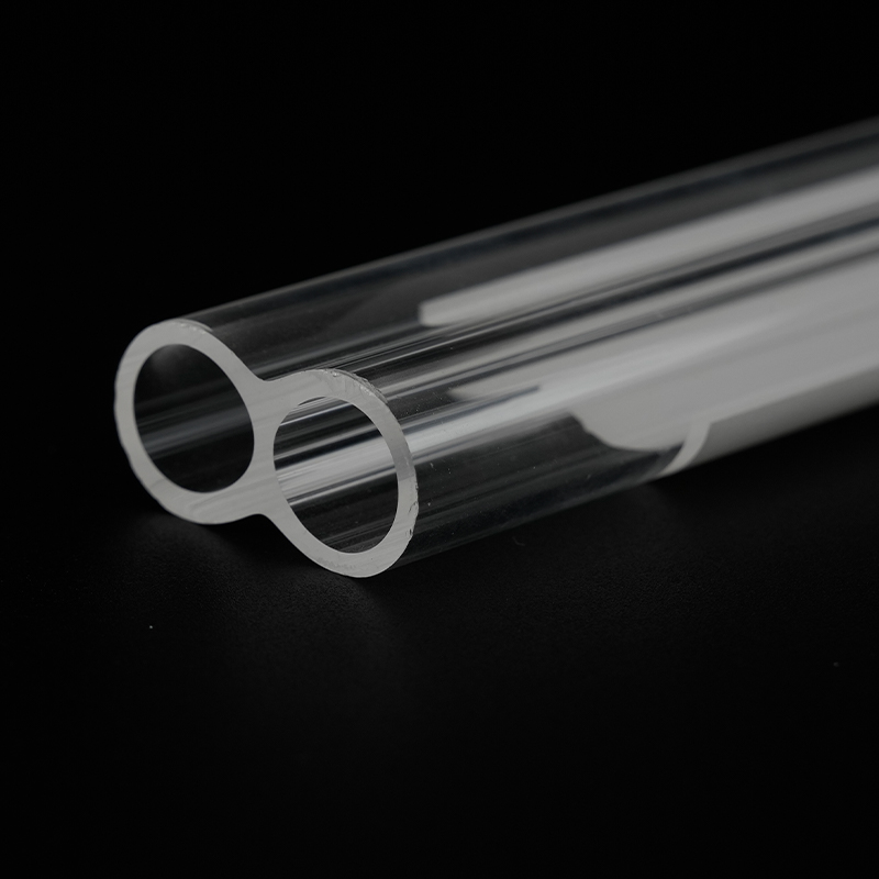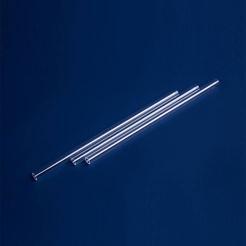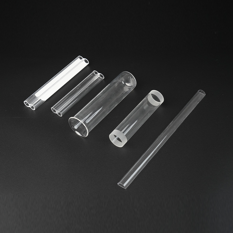 Sroicheann an feadán Grianchloch trédhearcach SiO2 os cionn 99.9, agus tá toisí geoiméadracha den scoth aige, cobhsaíocht cheimiceach, cobhsaíocht theirmeach, friotaíocht le dínádúrú teirmeach agus frithchriostalú, agus tarchur optúil os cionn 93; tá grúpa hiodrocsaile an fheadáin díhiodrocsaile faoi bhun 10ppm, agus tar éis díhiodrocsailiú i bhfolús, is féidir leis an ngrúpa hiodrocsaile teacht faoi bhun 5ppm, atá oiriúnach do tháirgí íseal-hiodrocsaile cosúil le lampaí mearcair ardbhrú, lampaí sóidiam, agus lampaí hailíd miotail.